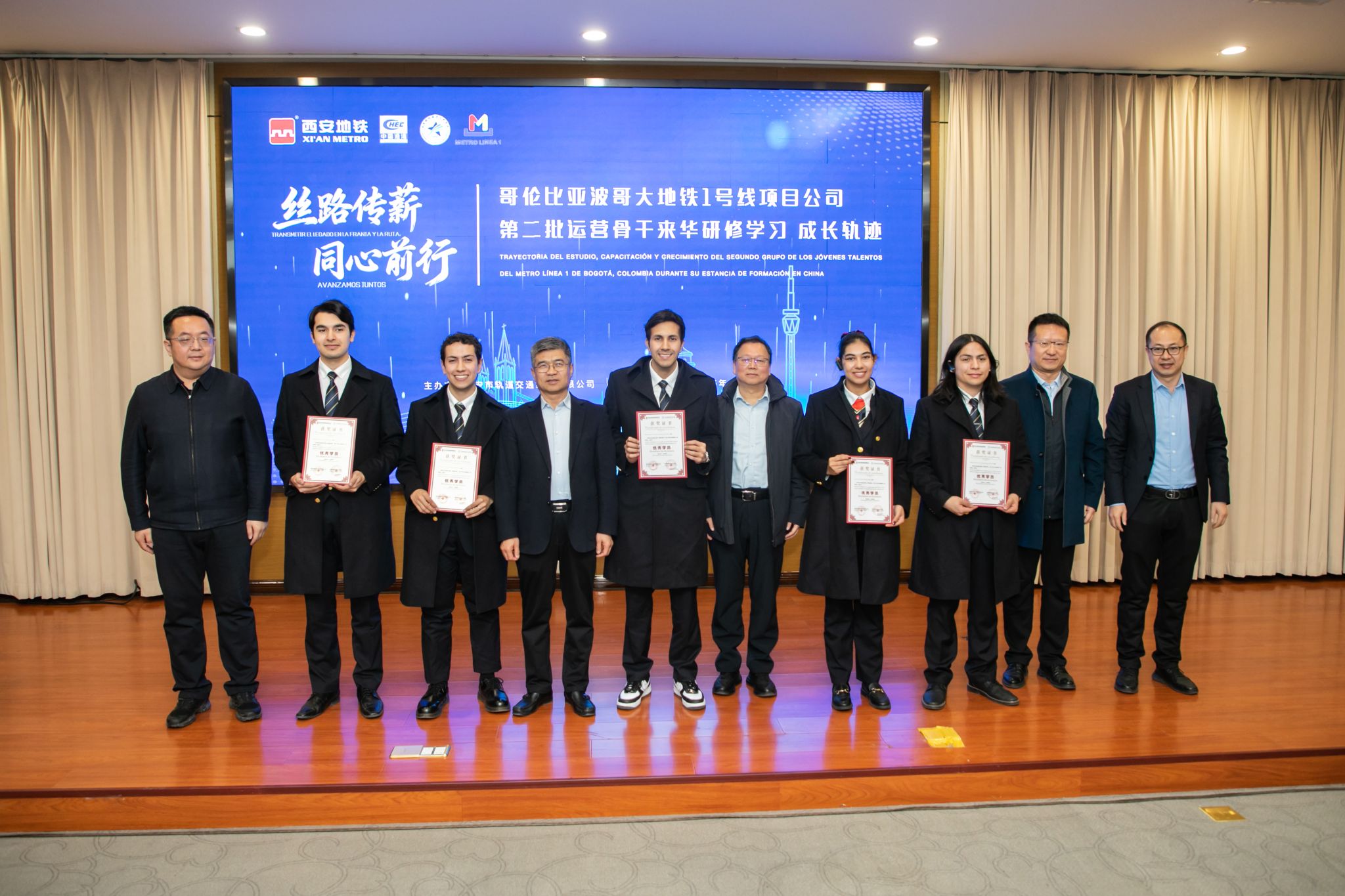 12月3日,哥伦比亚波哥大地铁一号线第二批留学生结业典礼在西安地铁2号线渭河车辆段隆重举行。陕西省委外办、西安市委组织部、中国港湾工程有限责任公司、西安市轨道交通集团有限公司和西安铁路职业技术学院相关领导应邀出席典礼,共同见证39名哥伦比亚学子圆满完成学业、开启人生新征程。仪式现场,西安铁路职业技术学院党委书记赵春平发表致辞,并向全体结业学子送上殷切寄语。