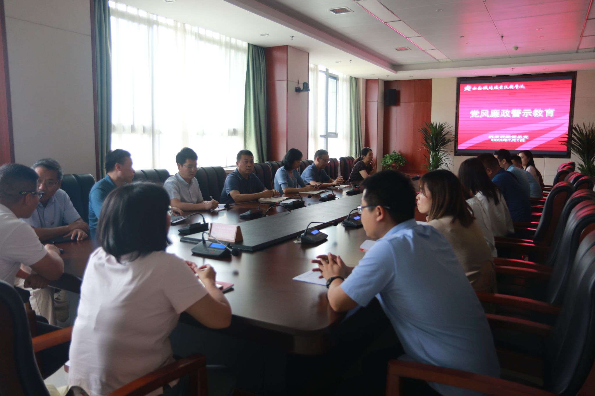 7月7日下午,机关后勤党总支在学院港务校区办公楼五楼第三会议室召开党员党风廉政警示教育会议,全体党员参加会议。会议由机关后勤党总支副书记刘晓婷主持。