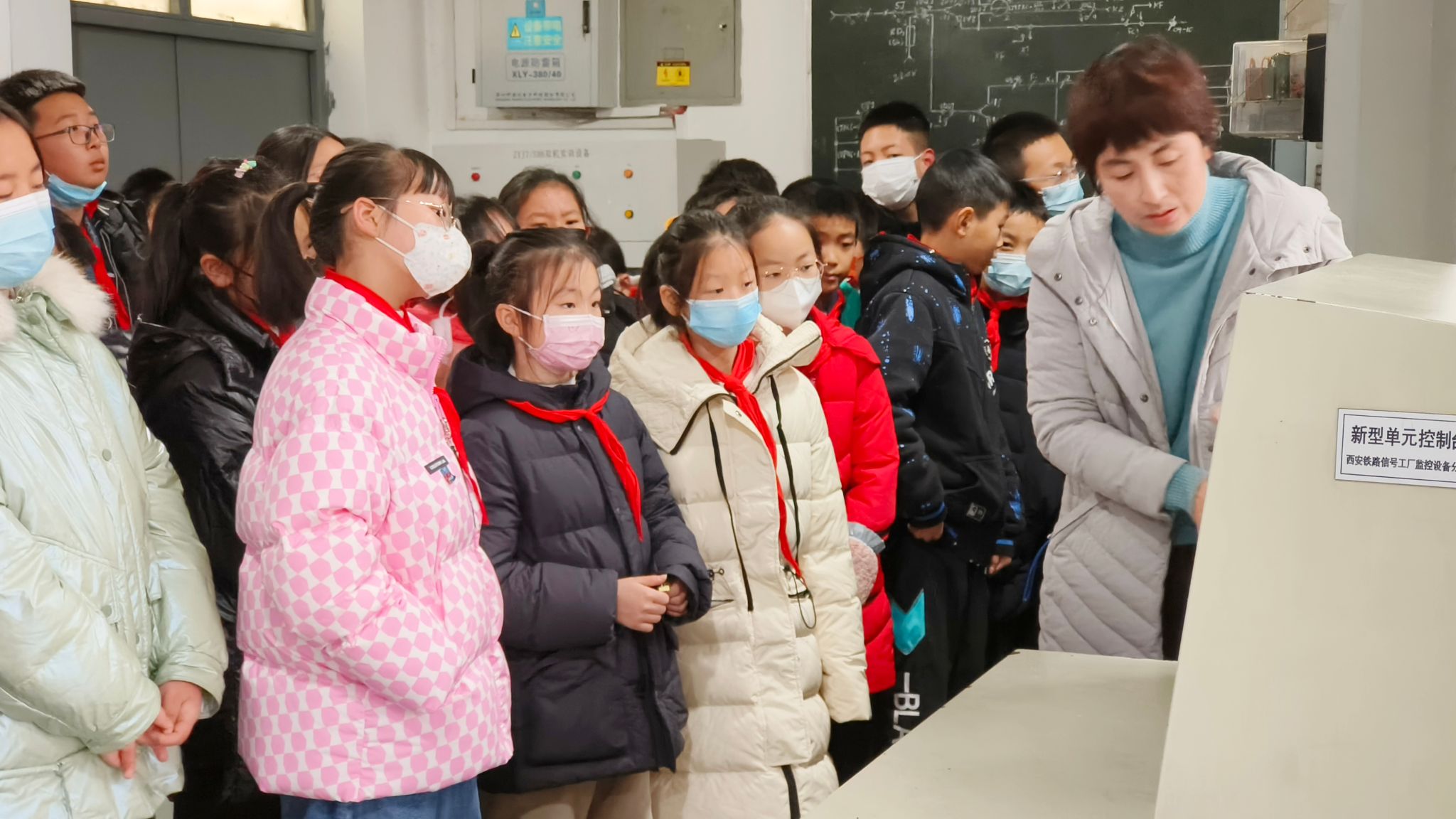 12月14日上午,西安莲湖区工农路小学五、六年级200余名学生在蔡静校长带领下前来我院进行劳动教育实践。电子信息学院副院长冯国良、办公室副主任杨星、铁道信号教研室孙会儒等老师参加活动。本次活动包含铁路知识科普讲座、劳动教育、铁路文化教育和劳动教育基地参观实践等项目。