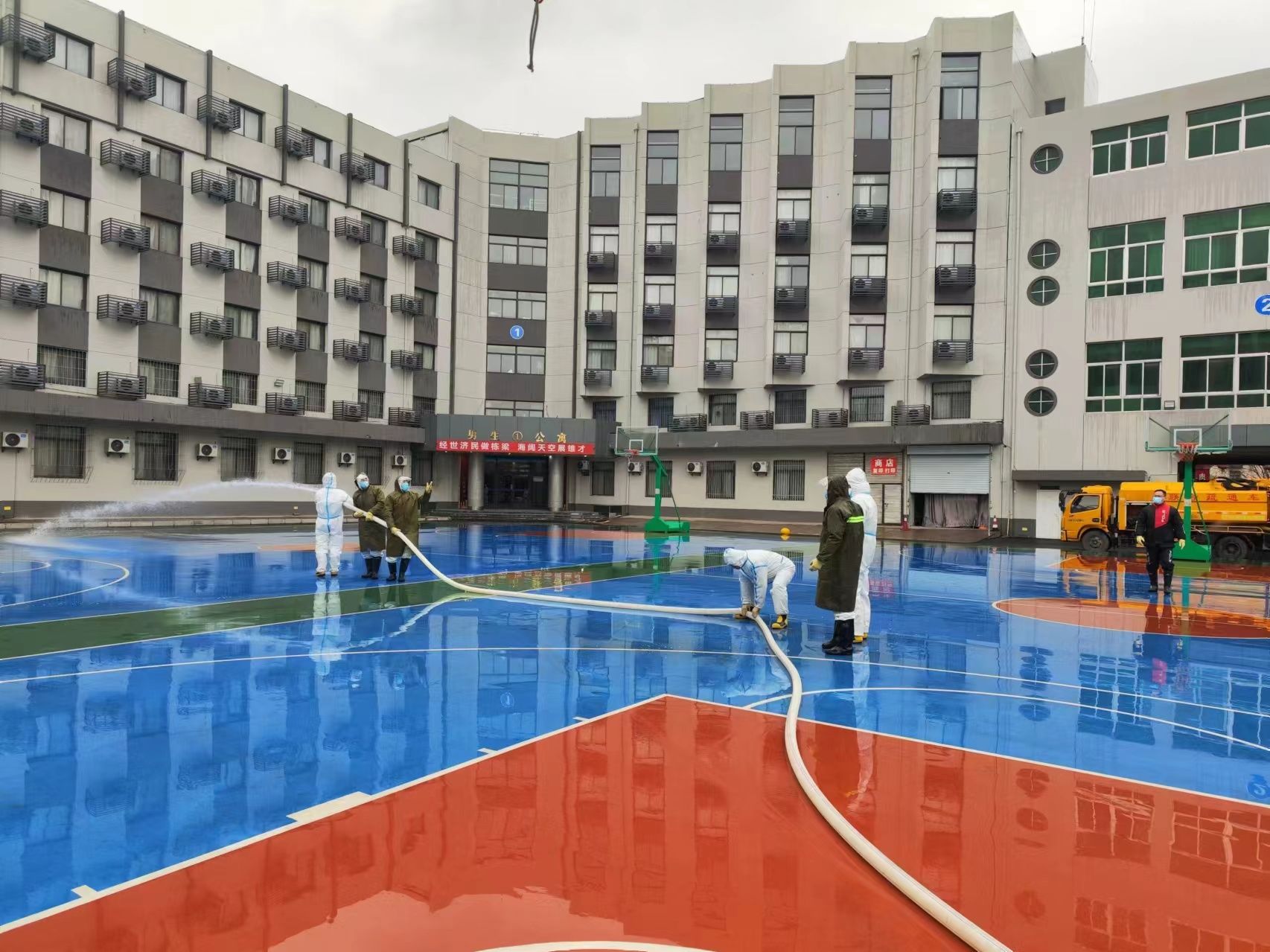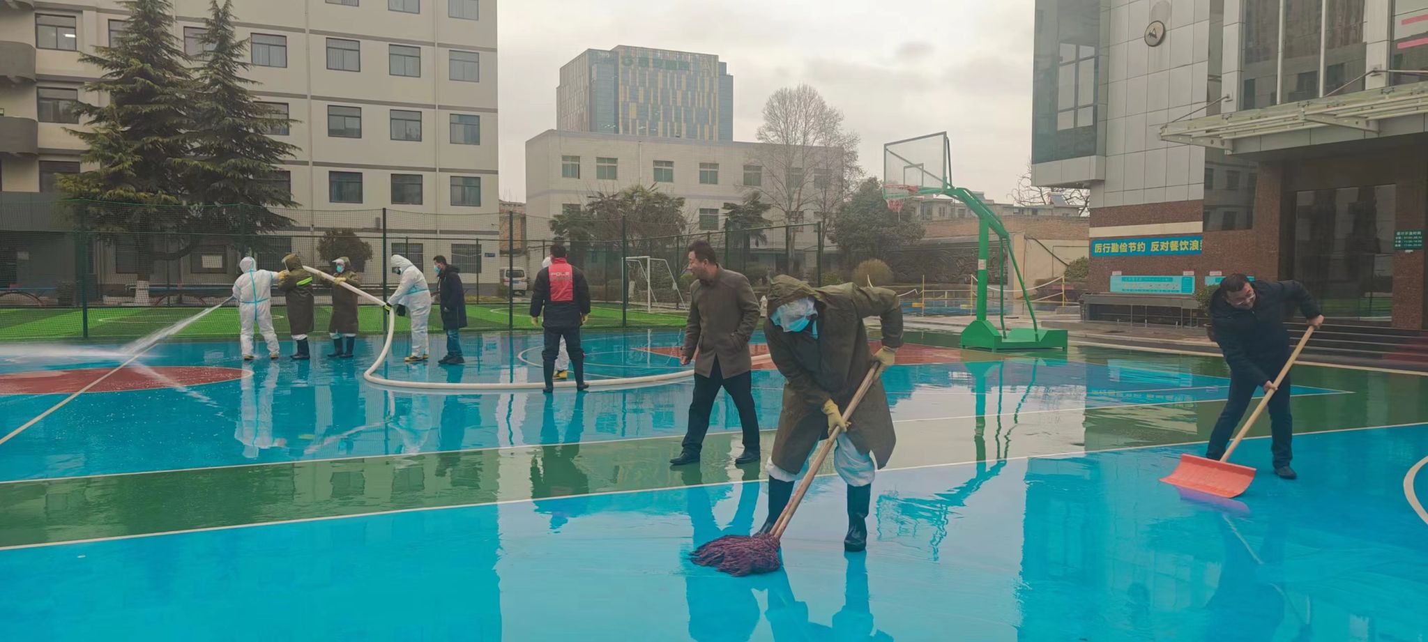 春节假期结束后,骤然而至的浮尘天气使校区蒙上了一层厚厚的灰尘。大年初十,校区即组织了环境卫生保洁维护,特别是对羽毛球场、篮球场进行了冲洗,确保开学后教育教学正常使用。