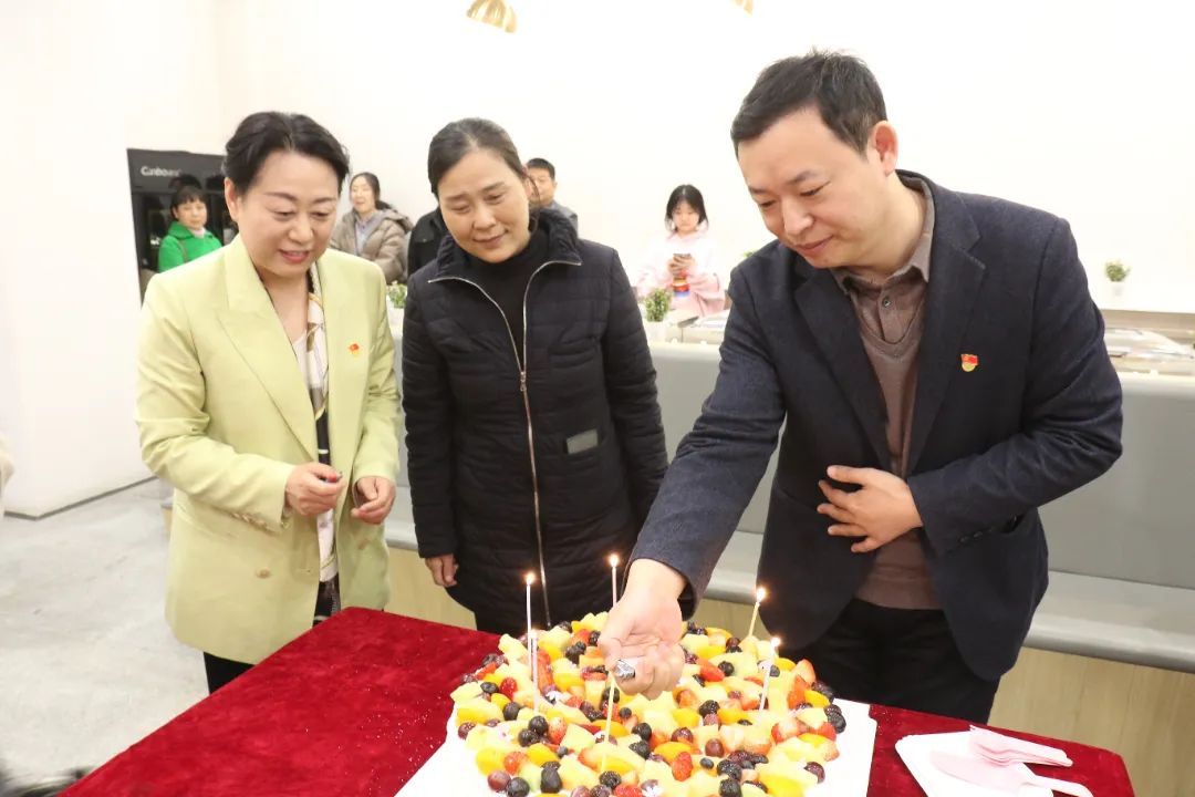 随后,校区领导和分会干部为女职工赠送鲜花,共同点亮蜡烛,许下美好愿望。