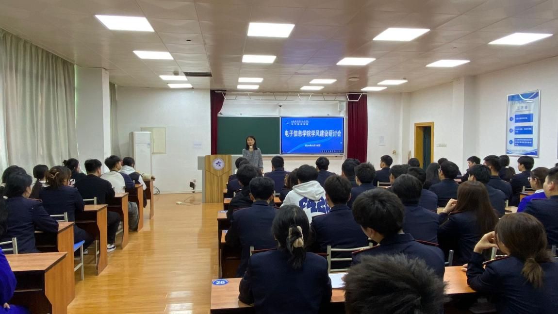为进一步加强学生综合素质能力培养,深化学院学风建设,筑牢育人共同体,切实提升学生的文明礼仪素养,电子信息学院开展了学生综合素质能力提升系列活动。3月14日下午,电子信息学院在教学楼407开展了以学风建设为主题的研讨会议。两办教师代表及各班班长、学习委员代表参加,会议由电子信息学院办公室主任高琳主持。