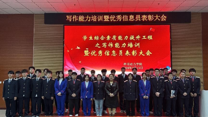 为进一步加强学生信息员队伍建设,强化学生综合素质能力,提升学生的写作能力,鼓励学生积极参与学校的信息工作,推动学院信息工作更好的发展,确保学院的宣传工作稳步提升。2024年3月13日我院牵引动力学院在105阶梯教室组织举办学生综合素质能力提升工程之写作能力培训暨优秀信息员表彰大会,信息部负责老师杨若和各班学生代表约150余名学生参加本次会议。