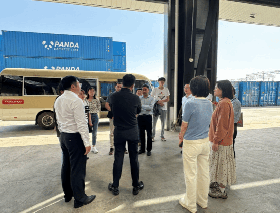 西安浐灞国际港管委会港口局干部高晓鹏对我校人员到来表示热烈欢迎,通过观看国际港务区的宣传片和整体规划模拟沙盘,高晓鹏生动介绍中欧班列西安集结中心的功能分布和建设运营情况,尤其是中欧班列(长安)号的运营现状以及班列在推动陕西深度融入共建“一带一路”中的重要作用。教师们和留学生通过实地参观中铁联集西安中心站的布局,感受内陆港设立的重大意义以及中欧班列在联通中国与世界中的桥梁与纽带作用。