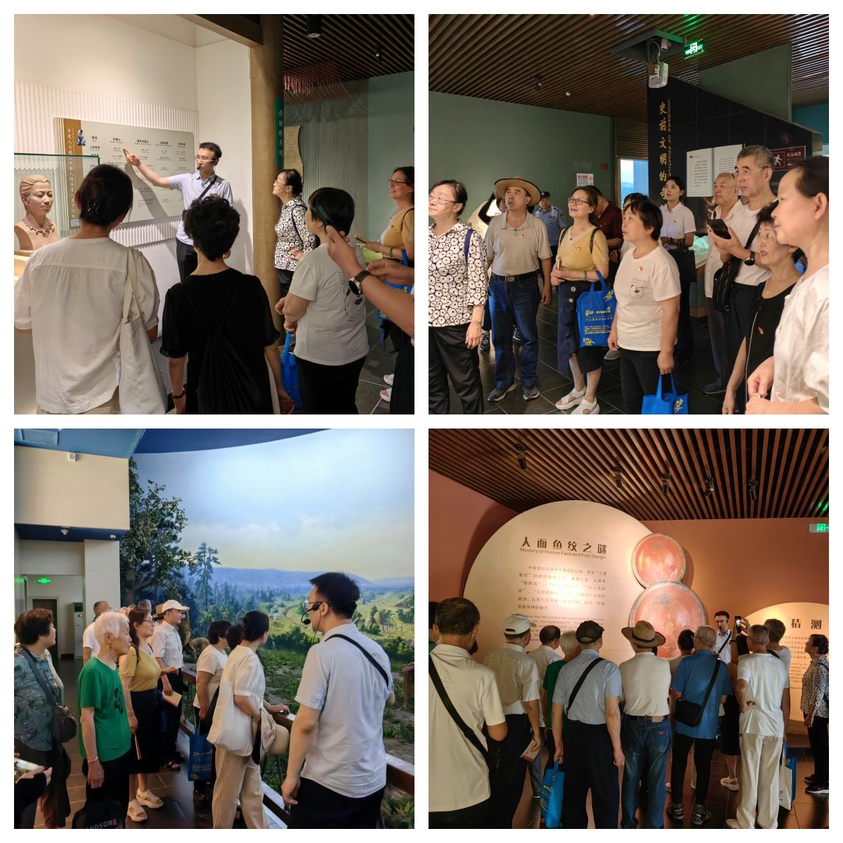 老党员们首先来到半坡博物馆。半坡博物馆是我国第一座史前聚落遗址博物馆,因其丰富的遗存和对于中国文物考古学事业发展以及史前人类社会史研究的重要性,半坡遗址于1961年被国务院公布为第一批全国重点文物保护单位。1997年,半坡博物馆成为全国100个爱国主义教育示范基地之一。老党员们在半坡博物馆详细参观了正在展出的“至尊国礼展”和半坡博物馆的基本陈列、新建的遗址大厅及面貌一新的史前文化村。
