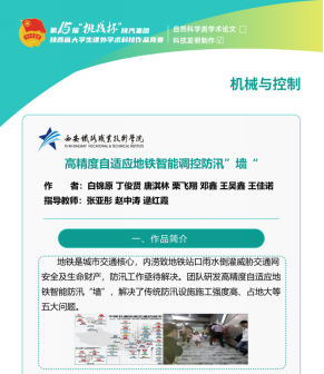 由机电院张亚彤,赵中涛,逯红霞指导,白锦原,丁俊贤等提交的参赛作品《高精度自适应地铁智能调控防汛“墙”》获一等奖;