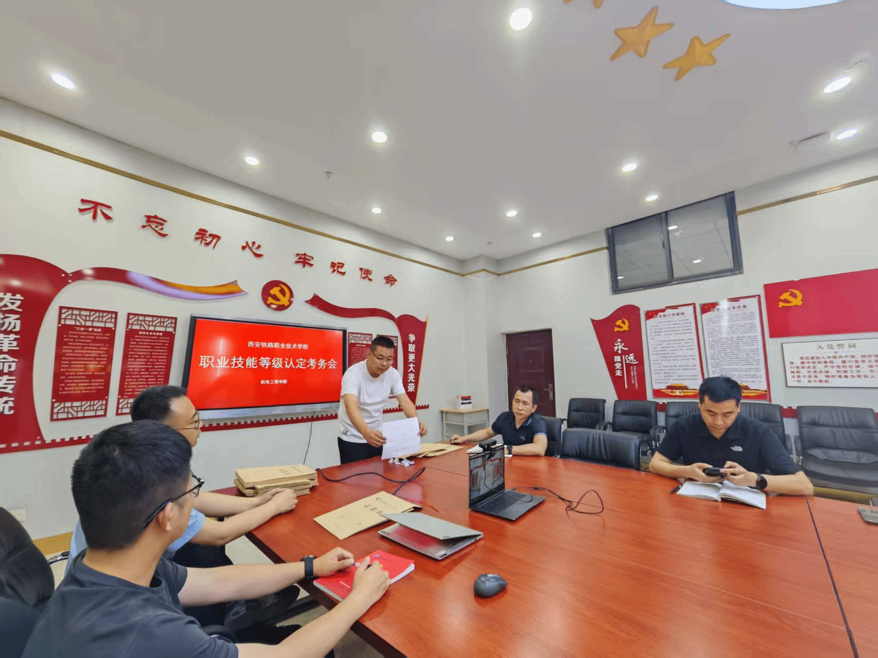 精细环节部署,打造闭环运行体系。为确保本次职业技能等级认定工作高质量完成,6月27日,机电工程学院组织召开考务工作协调会,对本批次认定考试工作进行全面安排部署,涵盖考务人员培训、监控设备调试、考场布置、职业技能等级认定考试流程等各项准备工作。科学部署、严密组织,全面构建“可回溯、可监控、可评价”的考试体系,确保此次考试“环节无盲区、执行无偏差、流程全闭环”。