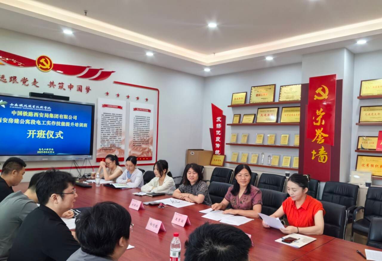 8月25日上午,2025年中国铁路西安局集团有限公司房建公寓段电工实作技能提升培训班开班仪式,在西安铁路职业技术学院电气工程学院813会议室举行。