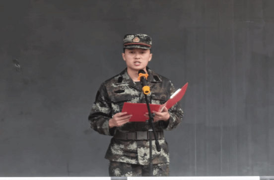在校生代表、承训教官、电子信息学院邱垲同学代表全体军训教官,感谢学校领导给予承担军训任务的信任。他表示一定认真履行教官的职责,以身作则,给同学们做好榜样,完成好训练任务,让同学们以崭新的精神面貌迎接下一阶段的学习与生活。