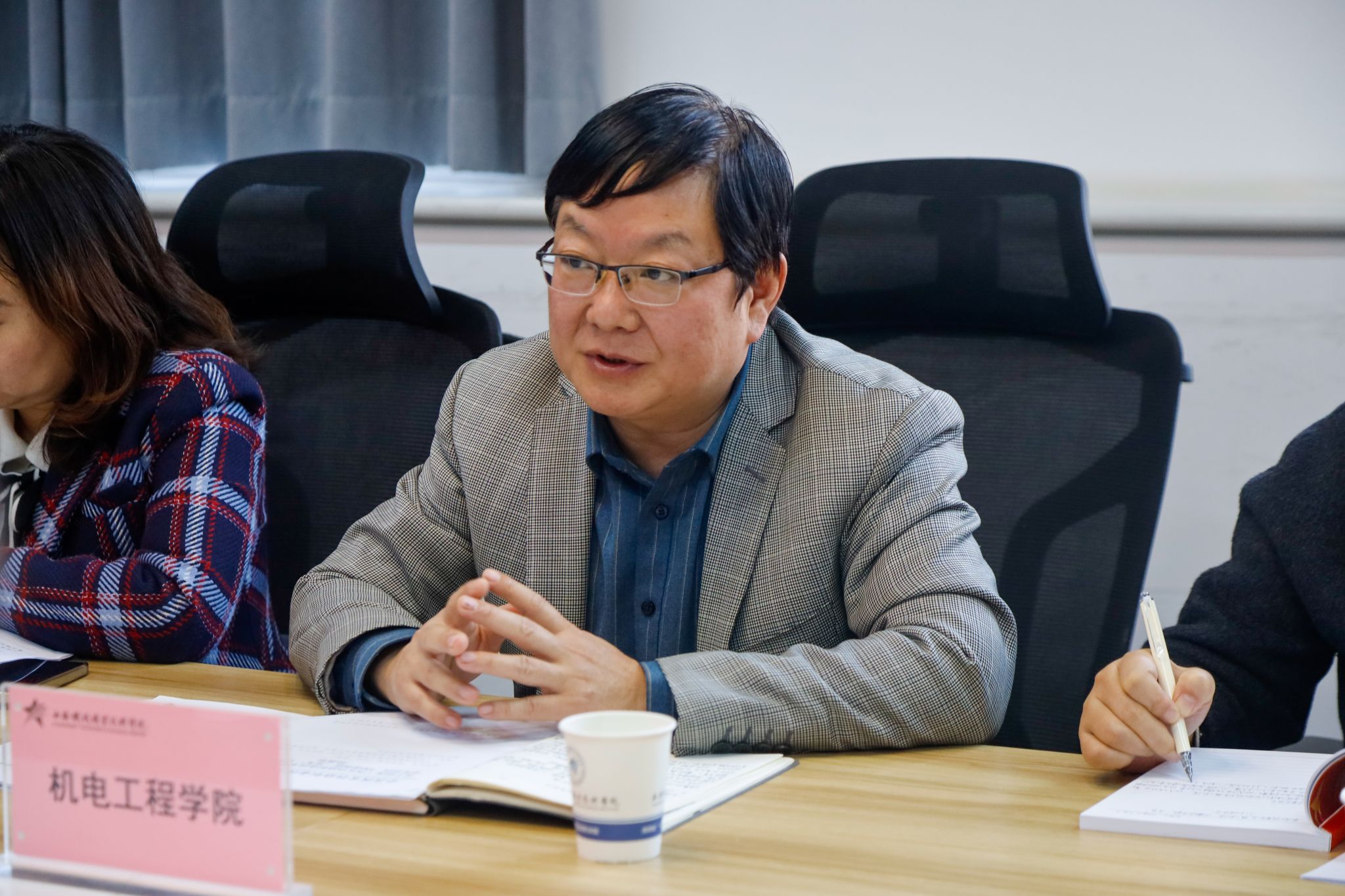 各职能处室负责人、教职工代表依次发言,一致表示坚决贯彻落实学院的“四进两联一交友”工作要求,全力支持书院的育人工作,认真做好本部门教职工的宣传动员。与会人员围绕方案修订、开展工作的具体形式和举措展开了热烈讨论,并提出了许多宝贵建议。例如,建议利用学工系统线上模块实现记录实时填写与上传;采用“灵活参与”模式,允许教师旁听团课、班会,以便更好地兼顾教学与育人工作;充分发挥教师团队优势,为学生提供创新创业与学业“定制化”帮扶等。会议就建立专项工作联络群、确定联络员、定期提交资料、开展典型案例征集宣传和育人先进评选表彰等具体工作安排达成一致,切实保障精工书院“四进两联一交友”工作常态化开展、建立长效机制落地见效。