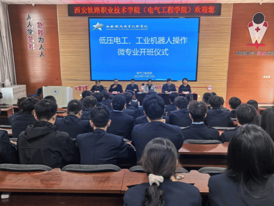 11月12日下午,西安铁路职业技术学院电气工程学院在101阶梯教室召开低压电工、工业机器人操作微专业开班仪式。学院副院长滕勇、电气工程学院党总支书记喻朝晖、院长王秀丽、电气工程学院副书记马纪及微专业负责人参加会议,共启技能培养新篇。会议由电气工程学院院长王秀丽主持。