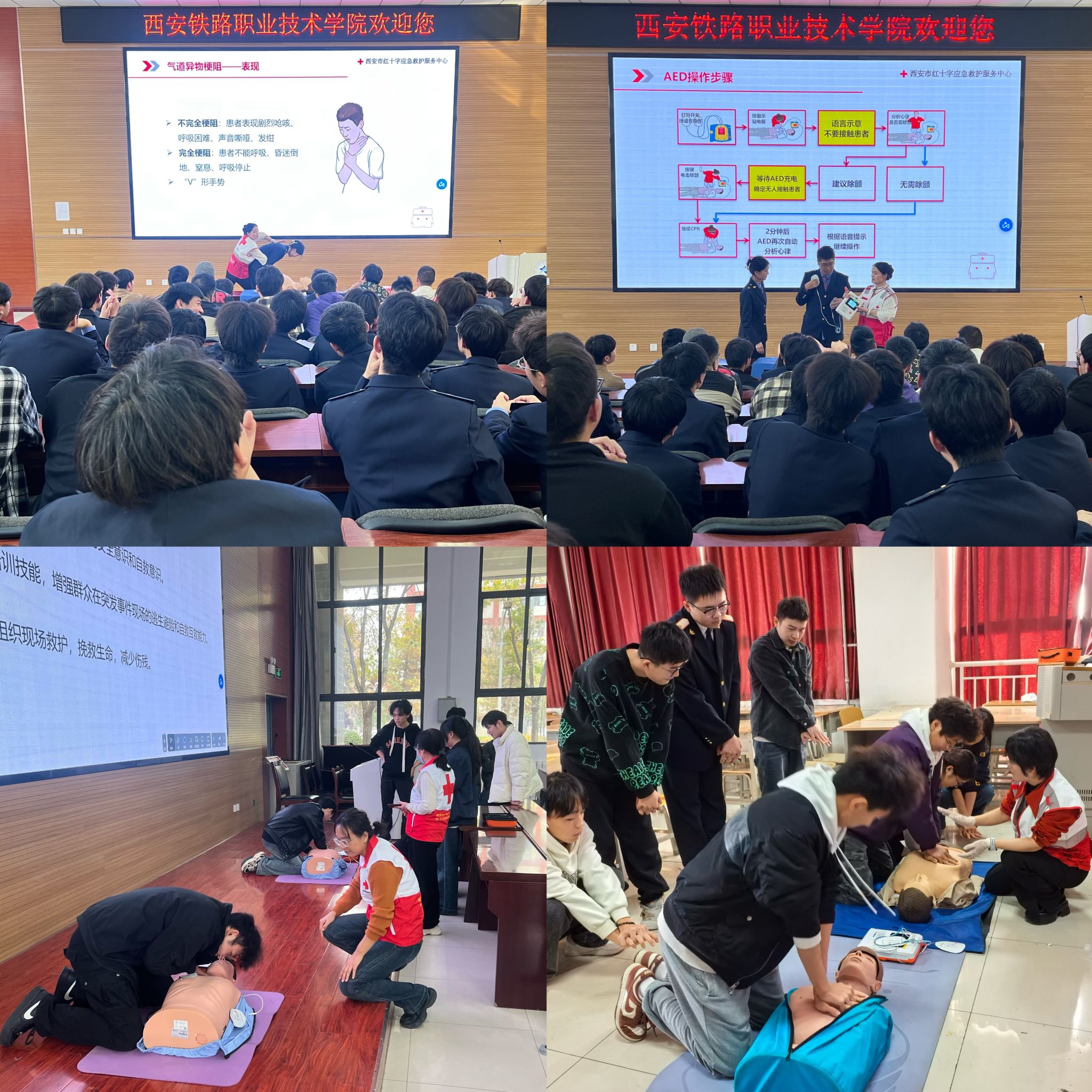 为响应学院高质量发展的理念,我院与西安市红十字会共创联办的西安铁路职业技术学院红十字应急救护培训站于11月15日开展了应急救护知识普及和技能综合培训。此次培训由后勤基建处与机电工程学院共同组织和实施。
