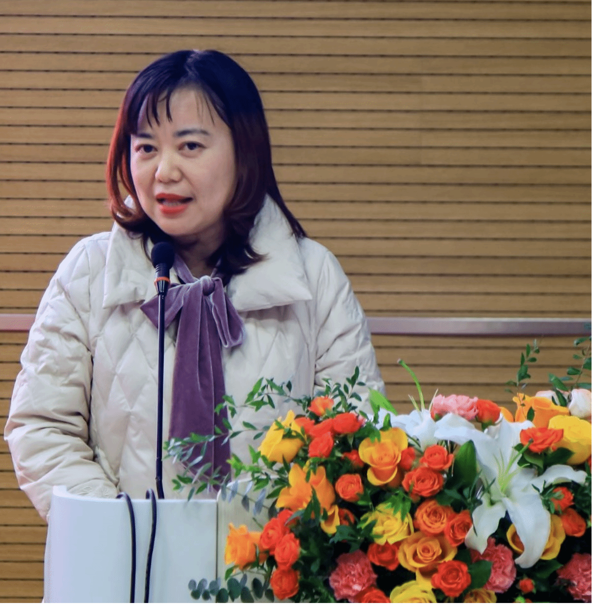 会上,机电工程学院党总支副书记韩臻首先肯定了机电合唱团经历对大学生的宝贵价值。她说“能在大学期间参加合唱团、遇到优秀的专业教师,对学生的身心健康和个人成长意义重大:一是和声、旋律能舒缓学业压力,让心灵得到疗愈与放松;二是集体排练能让学生在默契配合中收获归属感,在彼此鼓励中建立自信;三是登台演出的挑战与成就感,能锤炼抗压能力,对就业面试的仪态、自信塑造帮助显著;四是培养学生积极阳光的心态,助力乐观看待生活、提高学习效率。她从声部协同、情感递进、舞台表达等方面提出精准建议,并对合唱团提出三点希望:一是要保持热爱,持续提升艺术素养;二是要传承精神,带动校园文化发展;三是要积极参与后期排练,共建高水平团队。她勉励全体团员,要把合唱团经历作为新的起点,在追求艺术的同时,重视学业成绩与综合素质提升,培养社会责任感和创新精神,努力成为“有担当、有情怀”的时代青年。