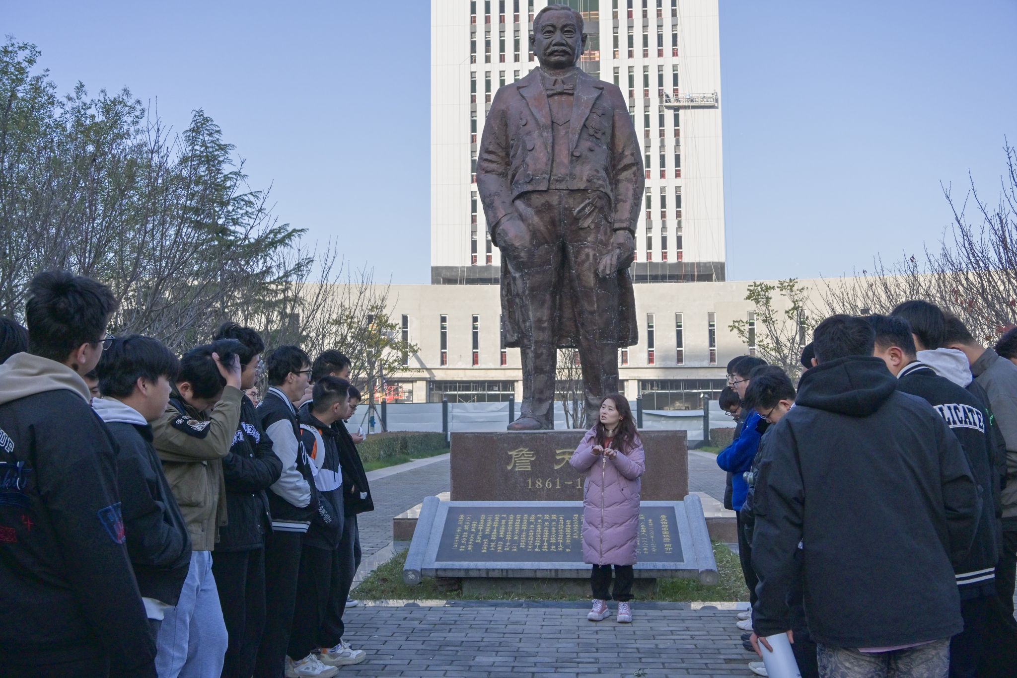 在黄炎培先生雕像前,同学们讲述了一段关于教育救国与实业报国的生动故事。不仅感受到先贤炽热的家国情怀,更深刻体会到教育的力量与知识分子的担当,深刻理解了黄炎培先生一生倡导“手脑并用、做学合一”,致力于打破传统教育桎梏,开创了与中国实际相结合的职业教育之路。他在民族危难之际奔走呼吁,将个人理想融入国家需要,其“理必求真,事必求是”的言行风范,深深感染了在场学子。