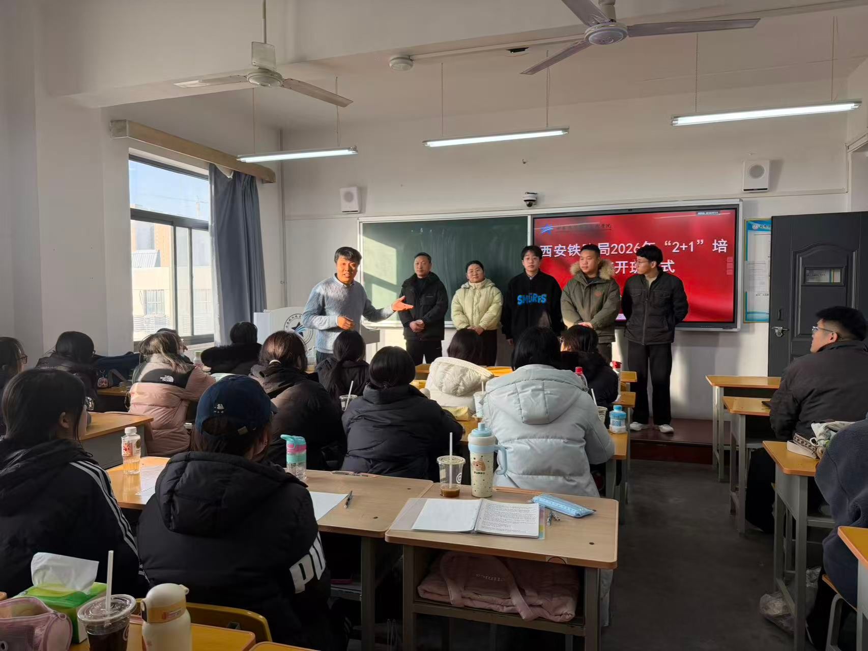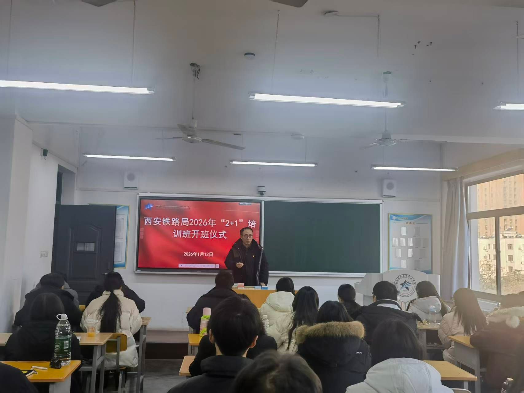 1月12日,根据学校关于对西安局预录取学生开展“2+1”校企联合培养工作的工作安排,交通运输学院在龙首校区6号楼第一会议室会议室召开西安铁路局2026届校企联合培养“2+1”培训班开班仪式。中国铁路西安局集团有限公司西安物流中心人力资源部部长高珊、交通运输学院院长王公强、副院长刘广武、物流教研室主任贾苏绒、学工办主任梁磊、院办副主任聂晶晶、运输教研室副主任牛天河、西安局相关工种培训教师代表、培训管理老师和全体参训学员共同参加本次开班仪式,仪式由刘广武主持。