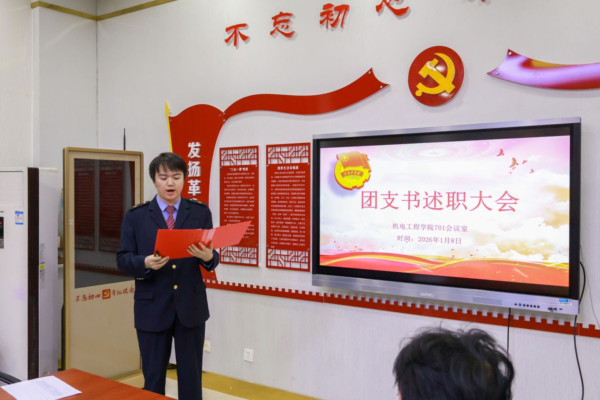 为深入学习贯彻习近平总书记关于青年工作的重要思想,扎实推进共青团工作规范化建设,全面检验基层团支部书记履职成效,1月8日,机电工程学院(精工书院)在机电楼701会议室成功召开2025年度团支部书记述职评议大会。团总支书记王倩、各部门骨干以及全体团支部书记参加本次述职大会。