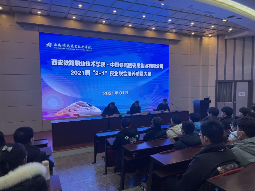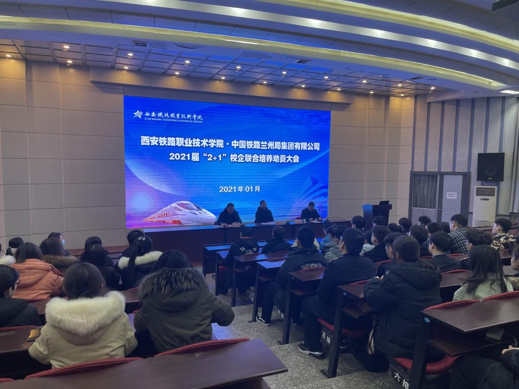 按照学院《关于对西安局、兰州局预录学生开展“2+1”校企联合培养工作的通知》,电子信息学院于2021年1月7日在自强校区教学楼一楼阶梯教室召开了西安局集团有限公司、兰州局集团有限公司“2+1” 校企联合培养动员会。教务处处长滕勇、电子信息学院院长董奇、电子信息学院党总支书记张伟敏,相关指导教师、授课教师、辅导员、班主任及学员共同参加大会。会议由张伟敏主持。