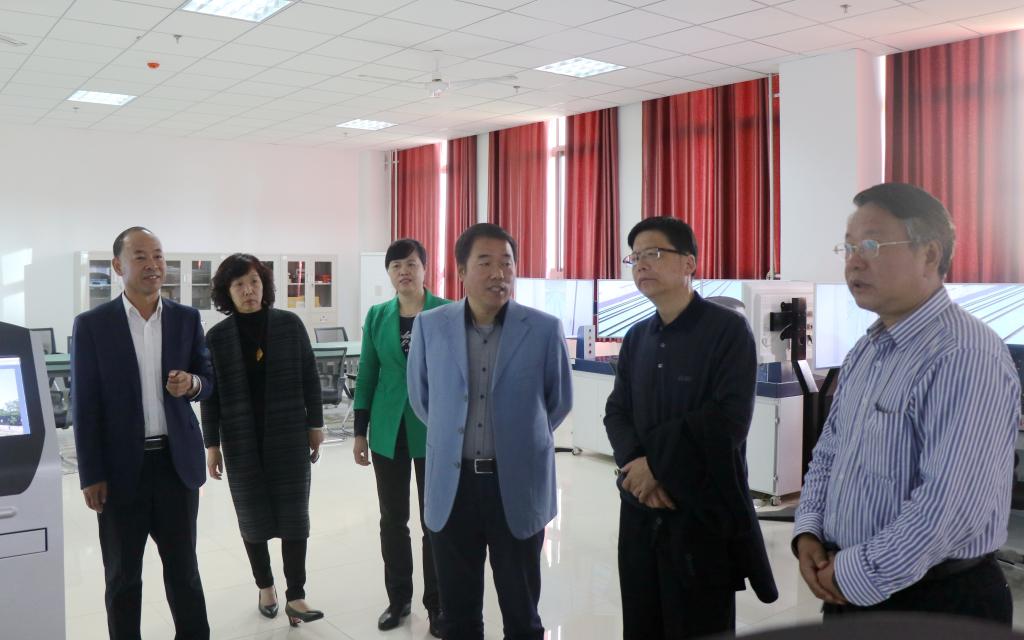 李益民向鲁洪详细介绍了我院铁道机车、城市轨道交通车辆技术、动车组驾驶、铁道机车车辆制造与维护等四个专业的建设和发展情况,介绍了相关实验实训室建设概况、整体思路及使用情况,同时重点参观了SS4B和SS8型机车模拟驾驶实训室、HXD3型机车模拟驾驶实训室、HXD3C型机车模拟驾驶实训室、CCB-II型电空制动机实训室、机车转向架演练场、城轨车辆电器实训室、城轨车辆模拟驾驶实训室等。