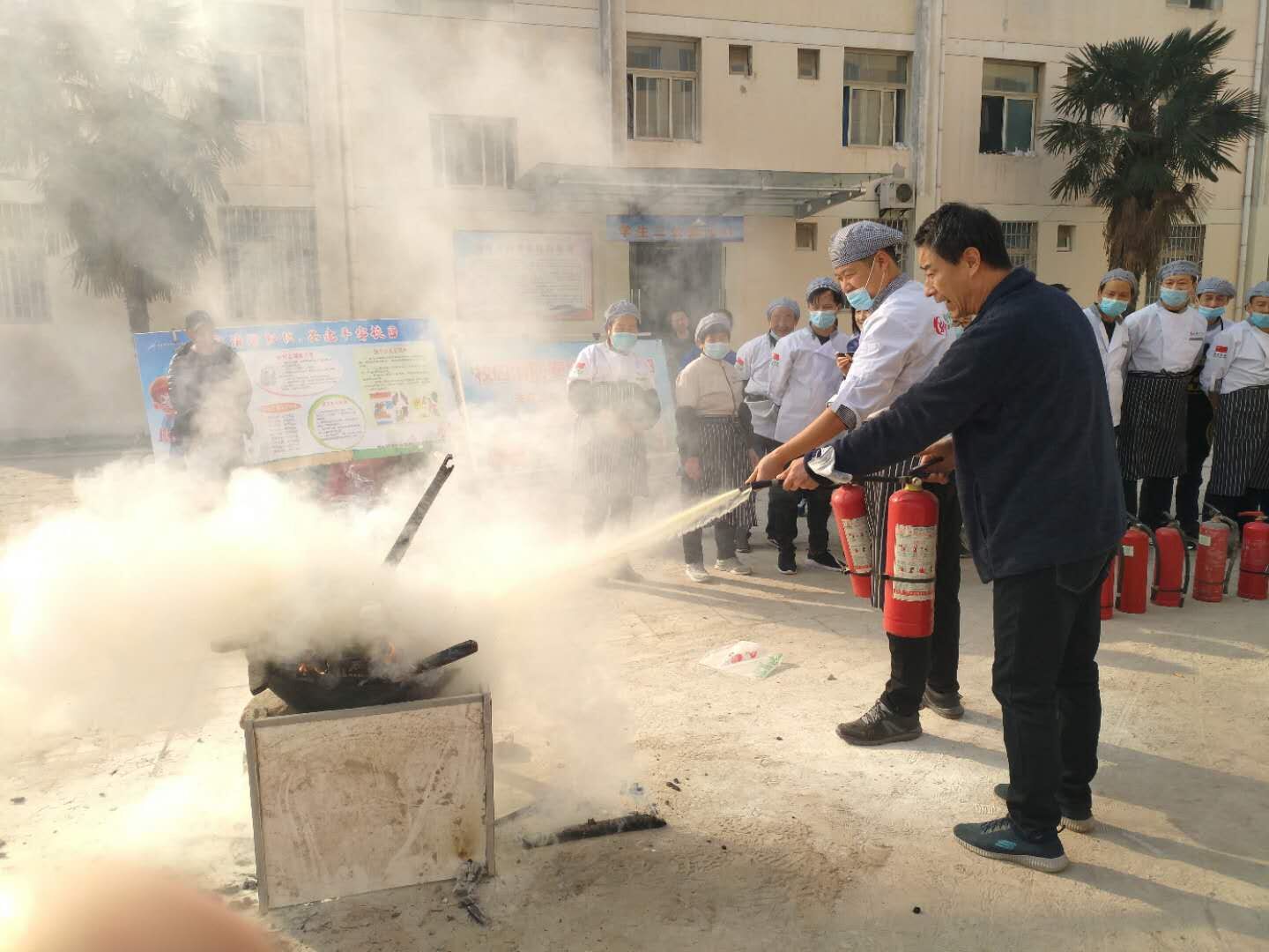 张庆波首先介绍了今年消防安全宣传的主题是“关注消防,生命至上”,详细介绍讲解了一般火灾发生的过程及日常防火、灭火的基本常识,重点强调了火场逃生知识及如何正确报火警,演示了灭火器的正确使用方法。他告诫大家要树立“生命至上,安全第一,预防为主,防消结合”的防范理念,并现场采取实地演练的方式,帮助大家纠正消防误区,进一步提高了校区师生消防安全意识。