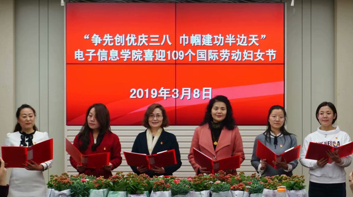 3月8日上午,电子信息学院为庆祝第109个国际劳动妇女节的来临,在自强校区办公楼第三会议室举行电子信息学院“争先创优庆三八,巾帼建功半边天”喜迎109个国际劳动妇女节活动。女教职工欢歌笑语,齐聚一堂,电子信息学院院长孙津平、党总支书记张伟敏及电子信息学院女教职工出席活动。本次活动由电子信息学院分会主席马荣主持。