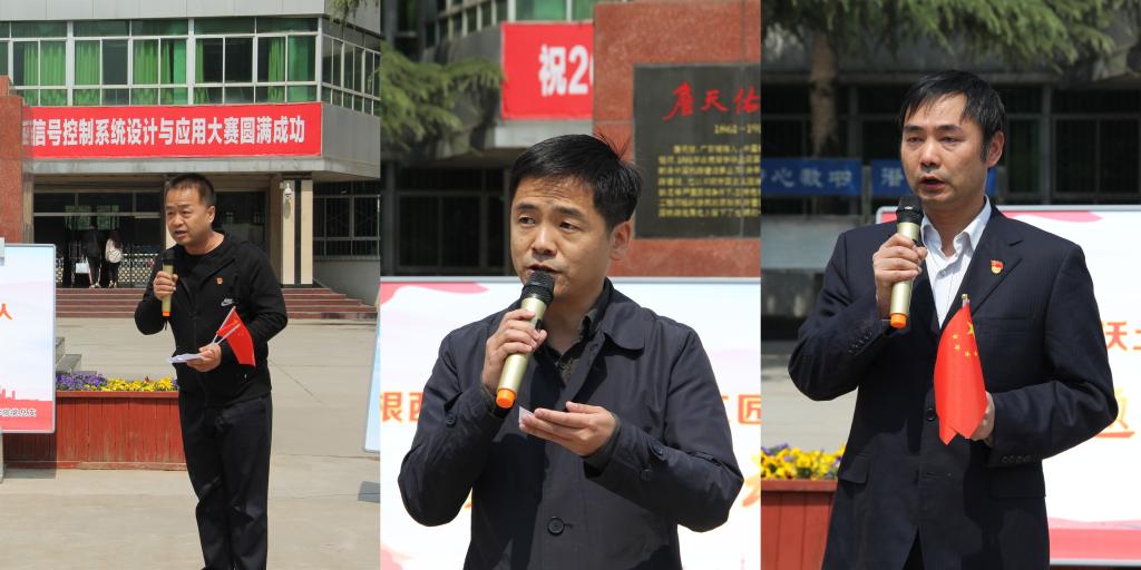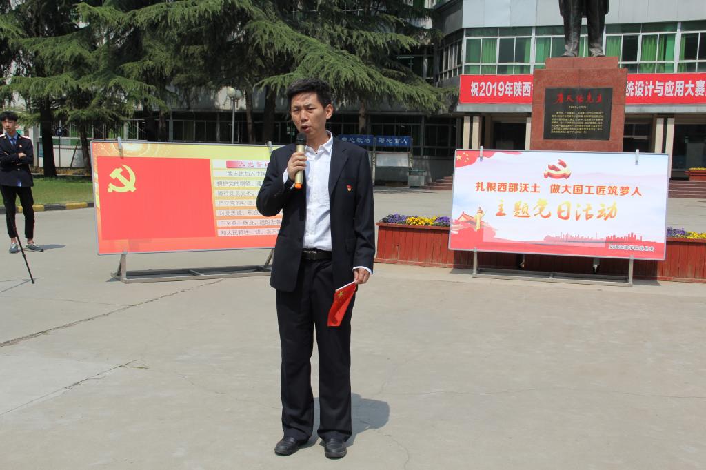 紧接着,由西安市优秀共产党员王公强、刘奇、刘新强老师代表全体党员教师亮出决心。三位老师站在不同的角度,表明了立志按照习总书记的要求,长期扎根基层、扎根一线的理想信念,把工作当成事业,把业务当成使命,立足本职、带头创新、埋头苦干、拼命硬干,为学院壮大、专业发展、学生成才而努力奋斗。