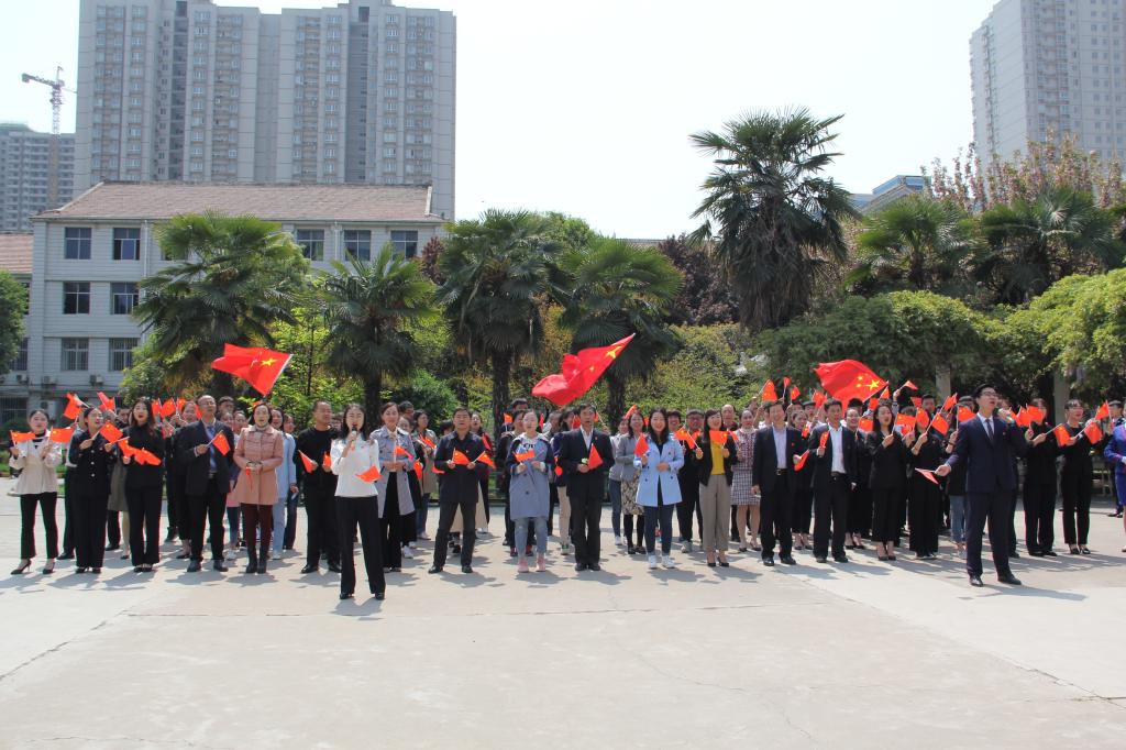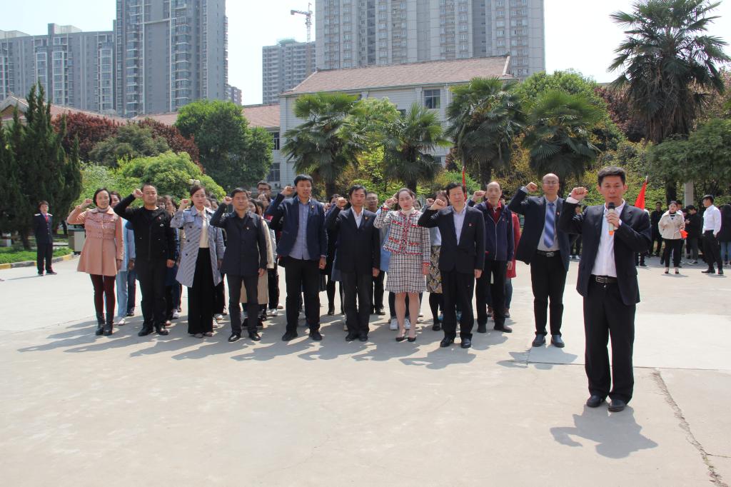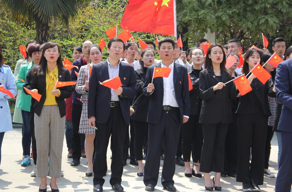 “我和我的祖国,一刻也不能分割,无论我走到哪里,都流出一首赞歌……”,4月4日中午,《我和我的祖国》这首优美动人的旋律在自强校区詹天佑广场上空飘扬,这是西安铁路职业技术学院交通运输党总支组织党员教师开展的特色主题党日的开场活动。此次主题党日活动分合唱、总支书记提寄语、党员代表亮决心、全体党员签名承诺、重温入党誓词、合影留念六个环节,旨在贯彻落实党的十九大“不忘初心、牢记使命”的要求,引导党员强化党性观念,增强“四个意识”、坚定“四个自信”、做到“两个维护”,在新时代更好地发挥高校教师党员的先锋模范作用,踏踏实实做大国工匠的筑梦人。