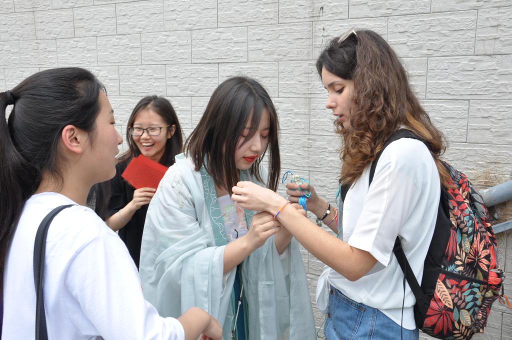 此次活动内容丰富多彩,开展了端午节传统文化有奖竞答、书画展览、猜谜抽奖、汉服展演、端午诗词诵读等活动。活动现场气氛热烈,首先同学们向过往师生发放精心设计的关于端午节传统文化知识的宣传单,并将事先写好的端午节传统文化小问题放在答题箱内,通过有奖竞答的方式,调动了同学们积极性,让同学们进一步了解端午节。与此同时,身着汉服的同学们为过往师生送上象征着吉祥安康的五彩绳和香包,并邀请师生在横幅上写下自己的签名,为大家送上端午安康的祝福。活动最后,同学们朗诵了《史记·屈原列传》节选,向这位伟大爱国诗人表达了缅怀与追念,再现了屈原的拳拳爱国心,弘扬了热爱祖国、热爱人民的伟大爱国主义精神。