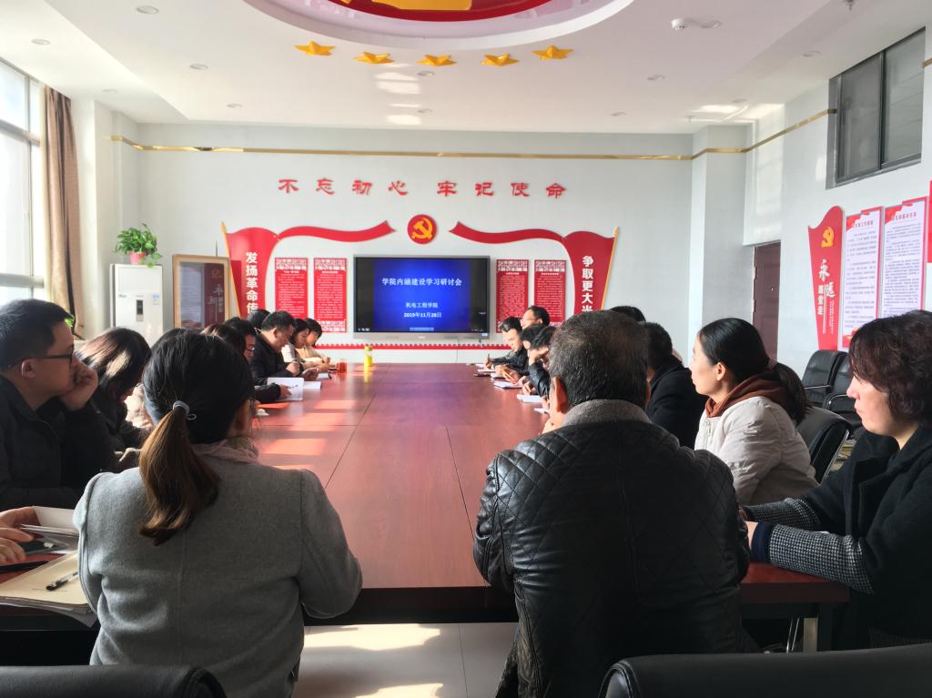 为传达学院内涵建设工作推进大会精神,引导教职工进一步统一思想、凝聚共识,11月28日,机电工程学院召开了内涵建设学习研讨会议,会议由机电工程学院院长代礼前主持。我院党总支书记张雅兰、教研室主任、各专业(学科)带头人和骨干教师参加研讨会。