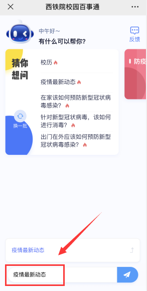 如何查看防疫知识:1. 在热点问题中直接点击需要查看问题: