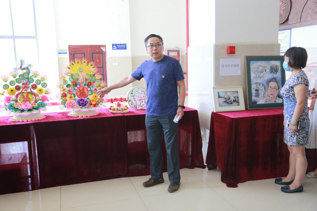 在如意面花棉絮画非遗产品展示现场,公司负责人刘宏斌对陕西非遗传承的推介拉开了参观的序幕。张家琪对非遗传承热情洋溢的肯定与支持,引发了在场老师的共鸣。看似不起眼的棉絮,经由棉絮画传承人许辉结合现代审美艺术加工,就变成了动物、花鸟,人物及风景等一幅幅栩栩如生的“棉絮画”。画作还能凸显出笔墨达不到的立体浮雕效果。展品《众志成城》《桃花》《牡丹》《萌宠》等色彩斑斓,巧夺天工,特别引人瞩目。面花制作技艺传承人王磊以面粉为原料,用刀、剪、针、梳等制作出的面花作品题材丰富,既有龙、凤、生肖,还有花、鸟、鱼、虫等,有的形态逼真、有的造型夸张,展示出大师高超的技艺。作品《龙凤呈祥》曾在2020央视“东南西北贺新春”春晚特别节目西安分会场展示,作品《福猪》以其玲珑精巧憨态可掬曾于2019年在凤凰卫视展出。