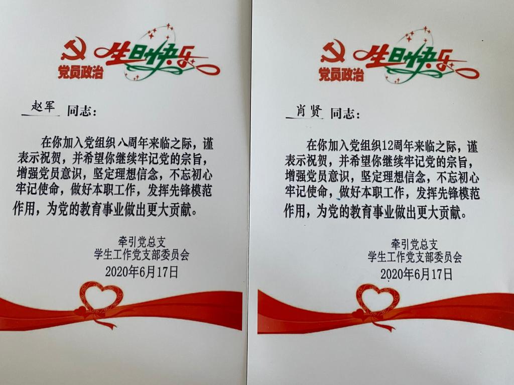 这是本次活动最为温馨最为动人的一幕。党支部向过政治生日的两名同志赠送了生日贺卡,送上了生日祝福,表达了组织对党员的的关怀和勉励,对这二位为党的教育事业所做的贡献表示感谢。接着,这两位深情地回忆了自己当时入党的情景,重温了入党誓词,并先后发表了生日感言,追忆入党历程,畅谈自己作为党员的切身感受,承诺将不忘初心,牢记使命,永葆党员本色。