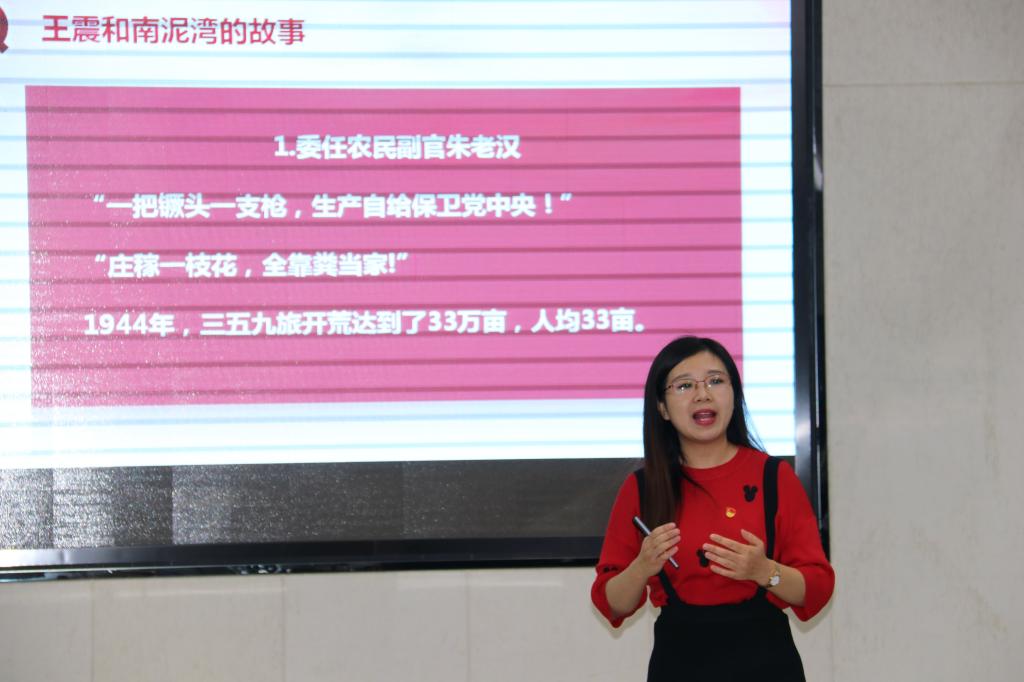 活动伊始,支部书记李勇对本次主题党日活动的目的、内容和活动形式进行了详细介绍。活动中,支部党员江岚、朱叶、吕菁集体朗诵了红色诗歌——《红船,从南湖起航》,刘睿菲、曹倩同志分别讲述了红色故事《王震和南泥湾》和《永远的战士——朱彦夫》。