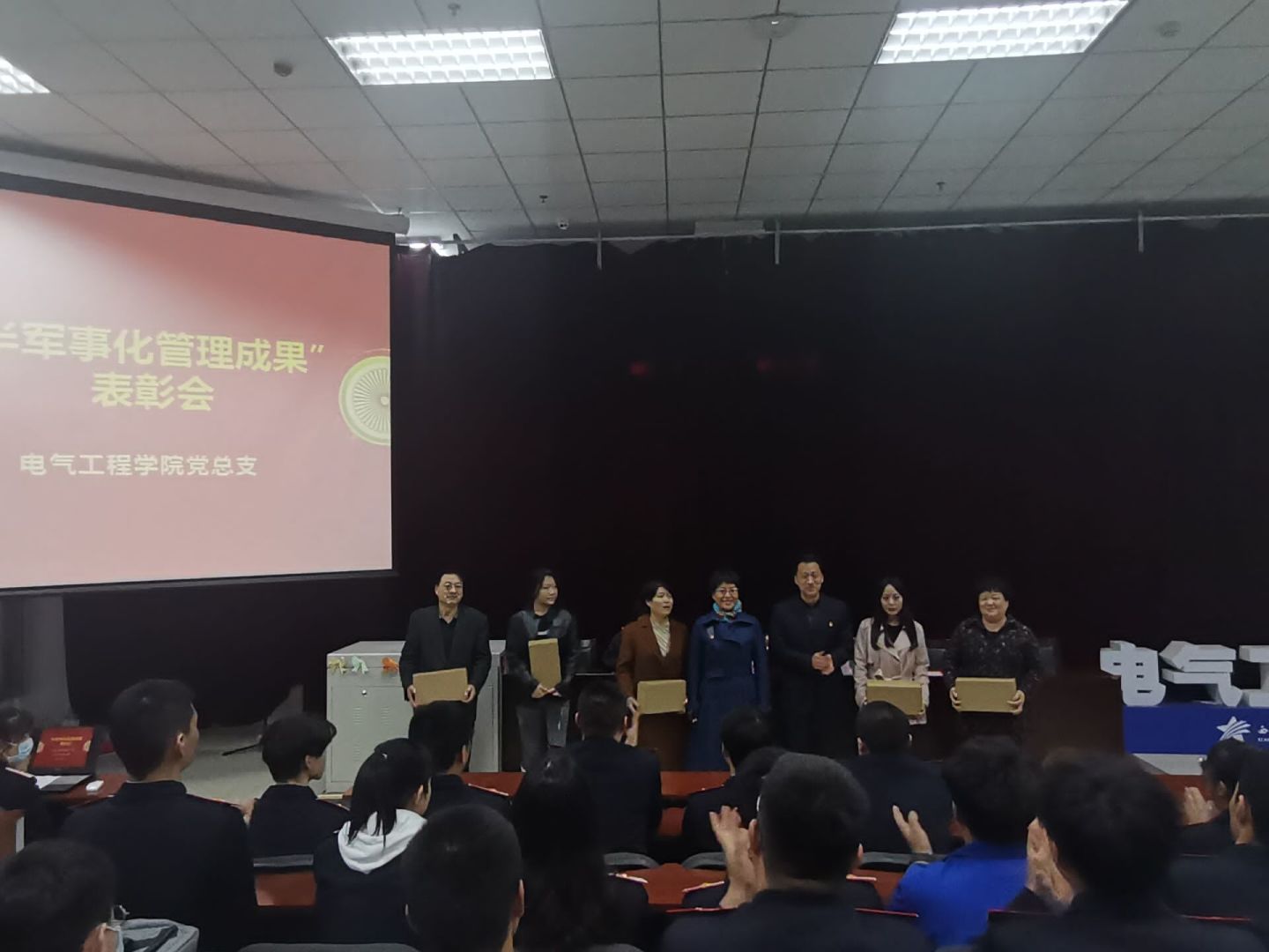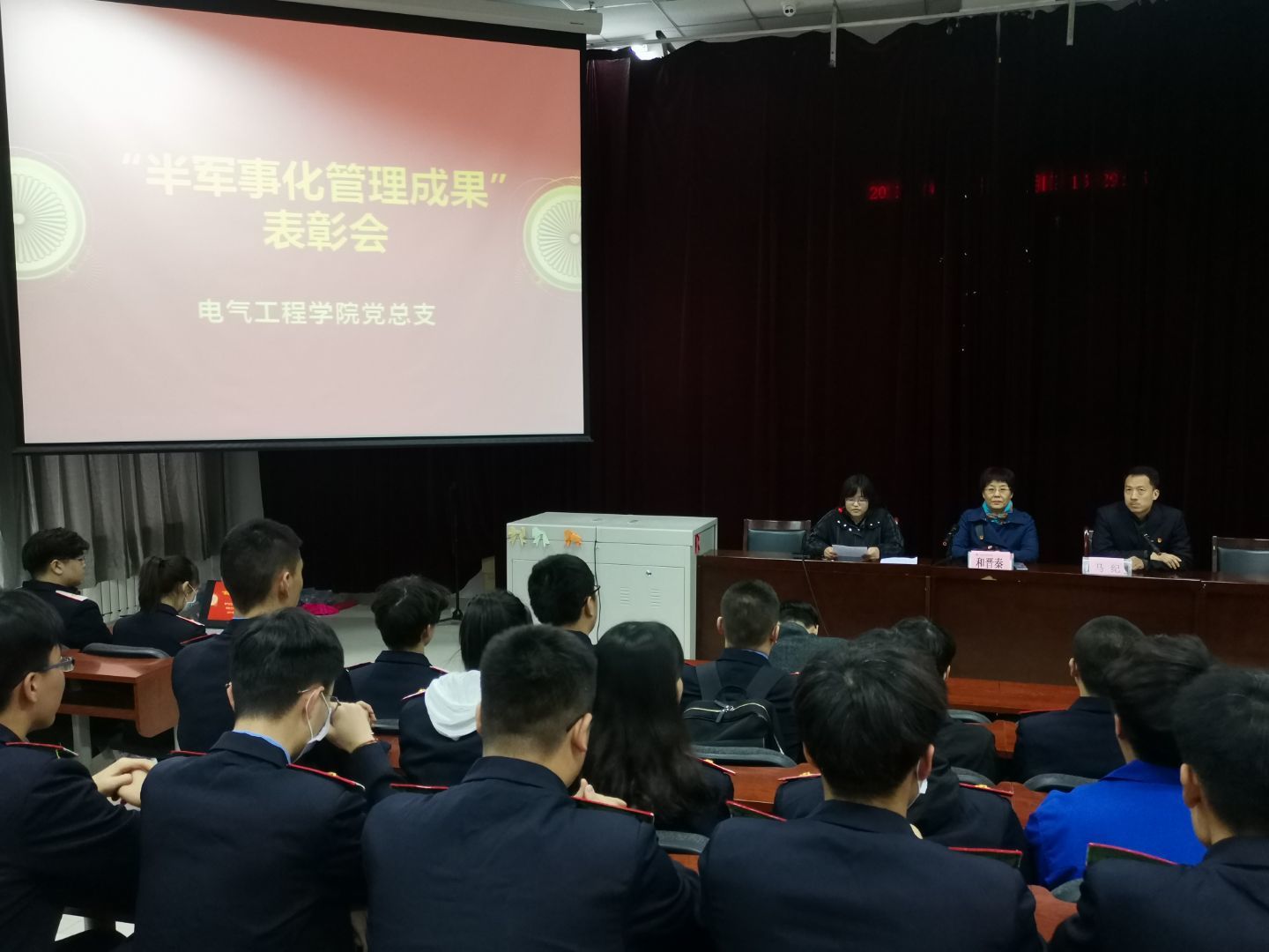 此次表彰大会,是对电气工程学院党总支前一阶段“半军事化管理”工作的一次回顾总结,旨在鼓励先进,树立榜样,进一步提高我院的“半军事化管理”工作水平,以及“半军事化管理”的成果展示,在学生中起到了很好的示范作用。