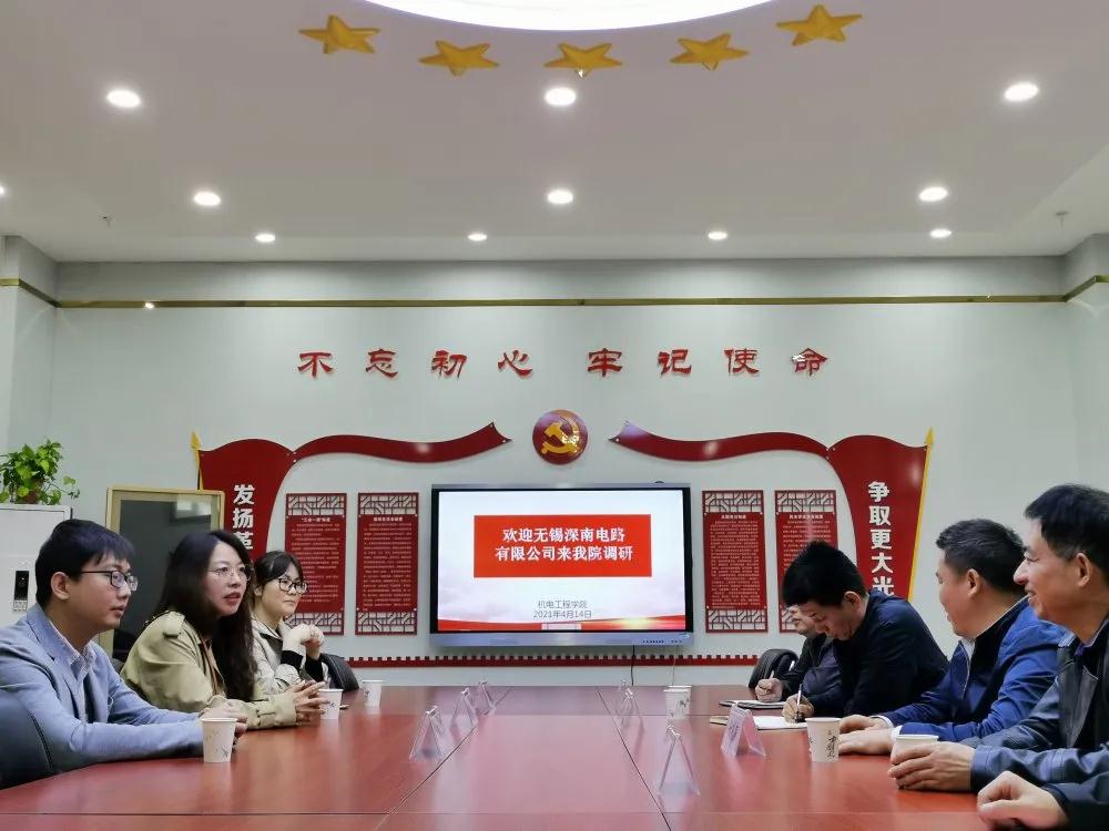 无锡深南电路公司一行对机电工程学院合作交流座谈会表示感谢,希望今后能加强联系,增进友谊,促进校企双方在人才培养、专业建设、科学研究等方面的深入合作。