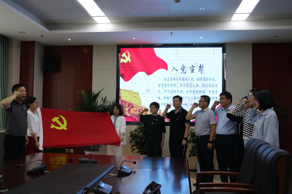首先,支部书记带领全体党员重温入党誓词。全体党员一起高举右手,面对鲜红的党旗,再次庄严宣誓:“我志愿加入中国共产党……随时准备为党和人民牺牲一切,永不叛党。”誓词铿锵恢宏,神圣豪迈,体现了大家对中国共产党的无限忠诚,坚定了入党使命和奋斗初心。党员们纷纷表示在今后的工作、学习、生活中一定以昂扬的士气、进取的心态和创先争优的精神践行入党誓词,以实际行动去恪守对党的承诺,立足本职,争当先锋。