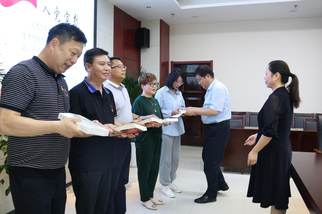 随后,全体党员集体过“政治生日”,由谭松和江岚同志向张爱民、同颖葵、李勇、吕菁和高帆五名党员同志赠送“党员生日贺卡”及纪念书籍。