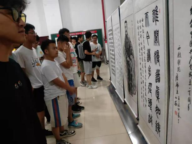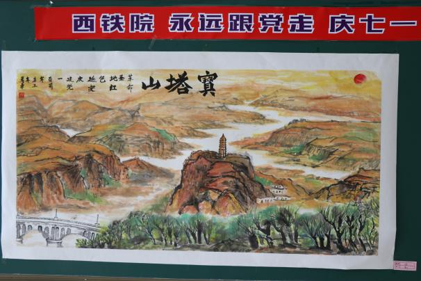 本次活动中牵引动力学院师生表现突出,为党的百年华诞献礼,积极热情创作挥毫,为学校提供了数十幅书法、绘画和摄影作品,其中康红霞教师的《百年辉煌》,以红船游弋在现代湖中为主体,表达党的历史穿越时空,走向未来。马卓同学挥毫泼墨,描绘革命圣地延安宝塔山,气势恢宏。刘稼鑫同学的战马奔腾飞跃,除此之外,还有我院同学的金文、楷书、隶书、篆书等作品。学院领导、师生对这些作品提出高度赞扬与评价,纷纷拍照留念。