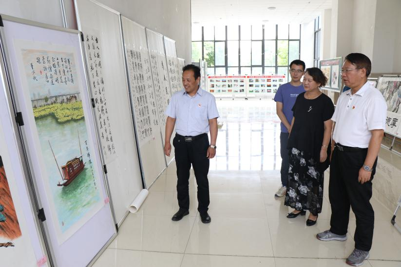 7月1日党的生日之际,牵引动力学院党总支书记李贞伟,院长李益民,副院长林辉,学工办主任陈广勇,班主任康红霞以及学院学生来到学院办公楼大厅,兴致勃勃地参观了“永远跟党走”——庆祝中国共产党成立100周年全校师生书画摄影作品展。李贞伟和李益民仔细观赏着每一幅作品,对教师和学生的书画、摄影技艺予以高度肯定和鼓励。