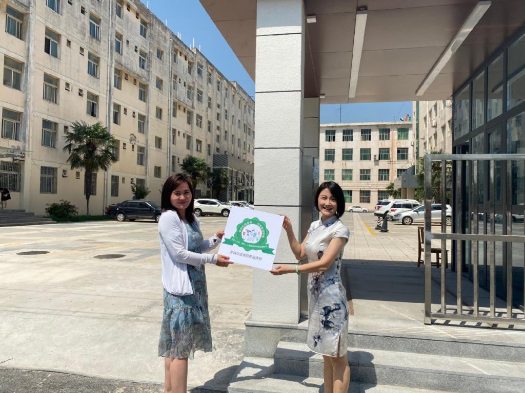7月13日上午,新城区自强街道办事处明宫社区负责人刘敏副主任一行来到我院龙首校区,刘敏此行代表新城区疫情防控指挥部,为辖区内新冠疫苗接种率达到90%以上的单位授牌。获得此牌,表明我院龙首校区已经完成“接种新冠疫苗·共筑免疫屏障”工作。据悉,明宫社区辖区内单位,仅有我院一家单位达标并接受授牌。