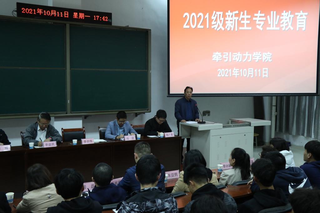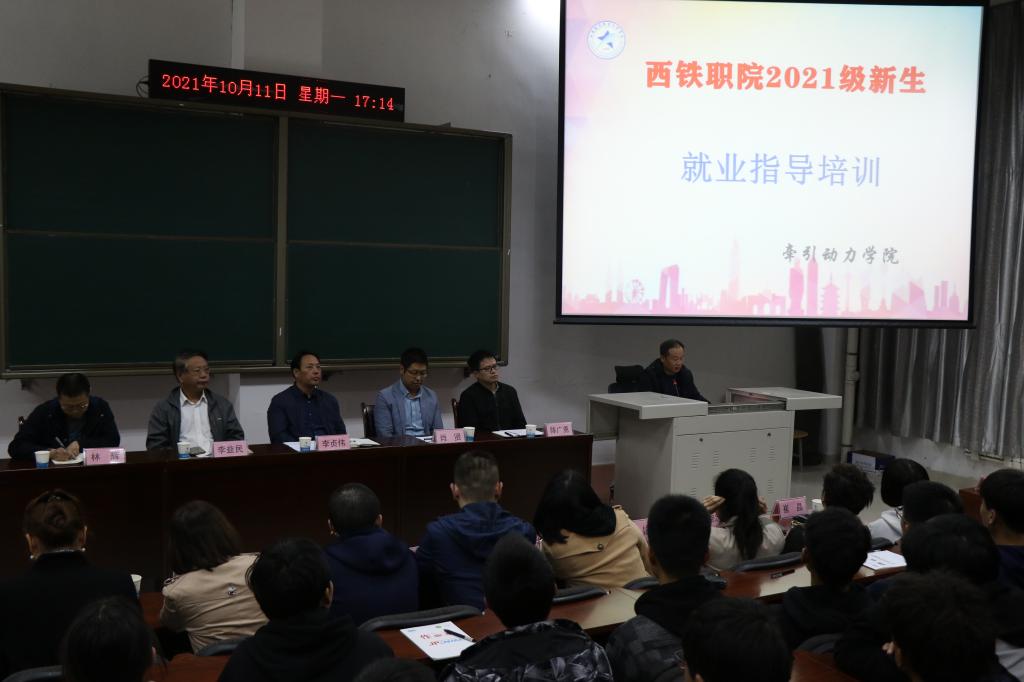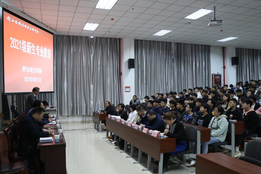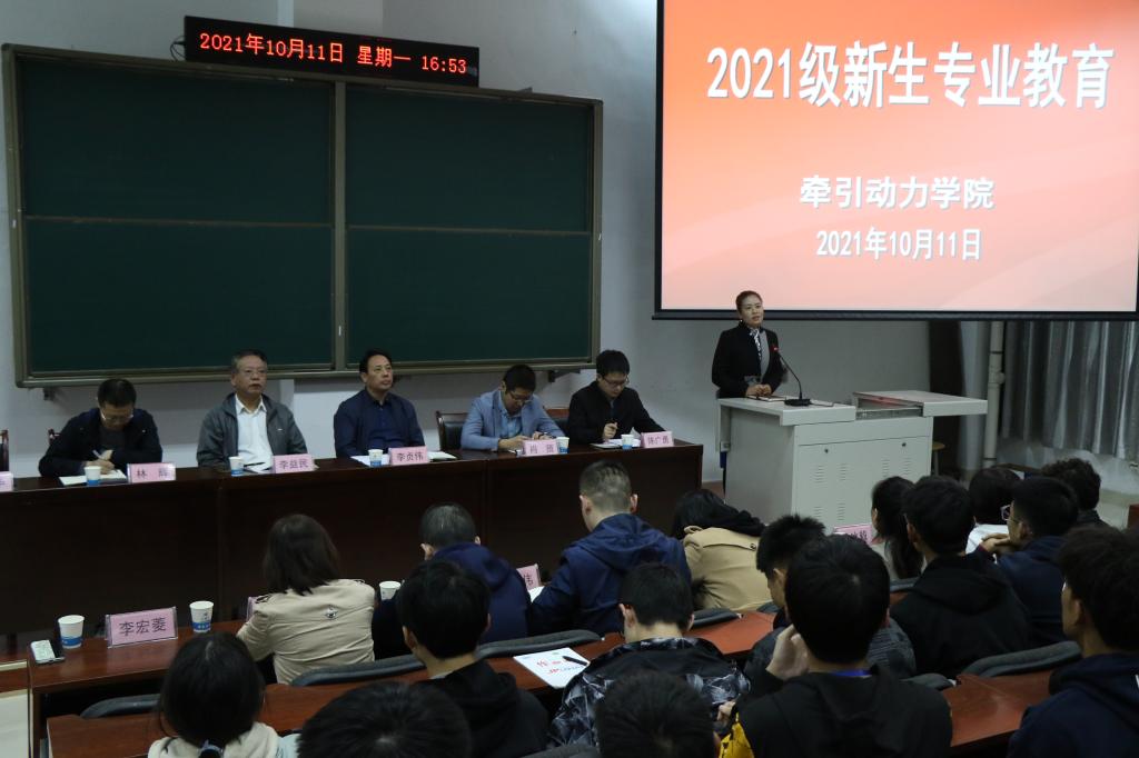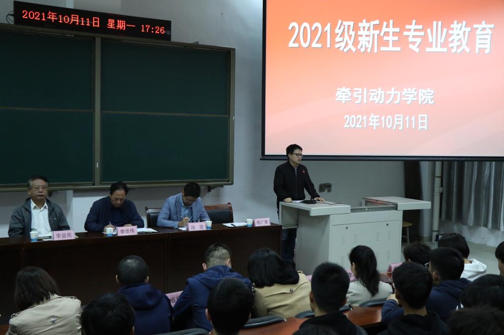 为帮助2021级新生进一步了解所学专业内容和特点,培养学习专业的兴趣,掌握科学的方法,合理制定今后的学习计划,了解就业形势,尽快适应新环境,新生活。10月11日下午,牵引动力学院在101阶梯教室采用现场直播的方式对2021级22个班开展了新生专业教育。牵引动力学院院长李益民、党总支书记李贞伟、副院长林辉、办公室主任肖贤、学工办主任陈广勇、办公室副主任孙正华、铁道机车运用与维护专业带头人崔晶、城轨车辆应用技术专业教研室主任李宏菱、动车组驾驶与维修专业带头人李冰毅、铁道机车车辆制造与维护专业带头人刘宏利及四个专业教研室主任及副主任参与了此次专业教育活动。专业教育活动由办公室主任肖贤主持。