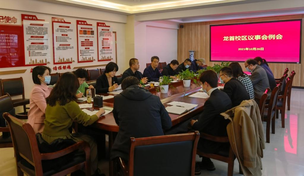 10月26日下午,龙首校区召开议事会例会,就推进校区疫情防控,加强学生管理及做好秋冬季常见传染病预防,做好校区稳定安全等相关工作作了研究、部署和具体要求。会议由自强综合管理处主任杨稳利主持,校区议事会成员暨入驻校区的四个二级学院副院长、学工办驻校区辅导员及龙首校区五个科室负责人参加了会议。