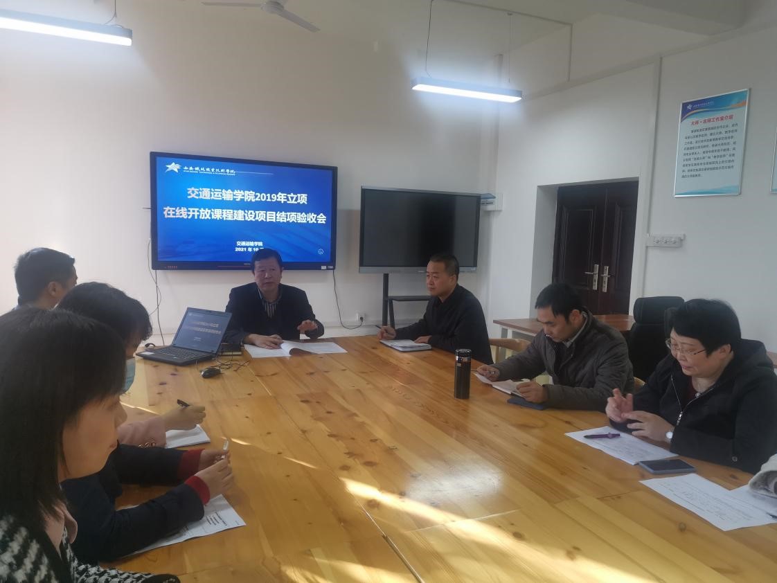10月21日下午,交通运输学院在自强校区名师工作室组织召开“交通运输学院2019年立项在线开放课建设项目结项验收”工作会议,对我院2019年立项的5门课程进行评审验收。交通运输学院院长徐小勇出席了本次会议,会议邀请赵岚、刘新强、史歌、马妙明、魏仁辉等5位专家参评验收。会议由交通运输学院副院长王公强主持。