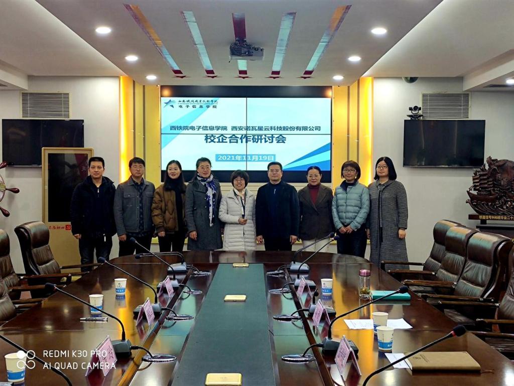 为更好地促进我院非轨道专业内涵建设,提高人才培养质量,促进学生就业,11月19日,电子信息学院与西安诺瓦星云科技股份有限公司(以下简称诺瓦)在自强校区第三会议室开展就业暨校企合作研讨会。出席研讨会的有诺瓦人力资源副总裁赵星梅、生产HRBP庞玲及培训部经理姜安国,电子信息学院党总支书记张伟敏、院长董奇、汽车电子教研室主任吕昕、教研室相关教师以及辅导办教师张子豪,会议由吕昕主持。