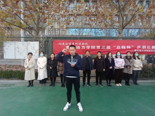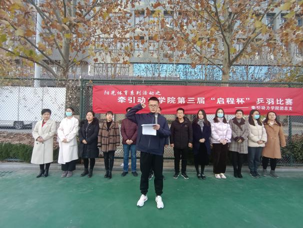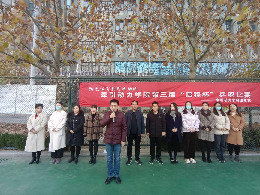 为增强学生身体素质,丰富学生课余生活,展现学生青春活力,11月26日,牵引动力学院第三届“启程杯”乒羽比赛开幕式在乒羽运动场正式召开,牵引动力学院学院教职员工,参赛运动员代表参加比赛启动仪式。