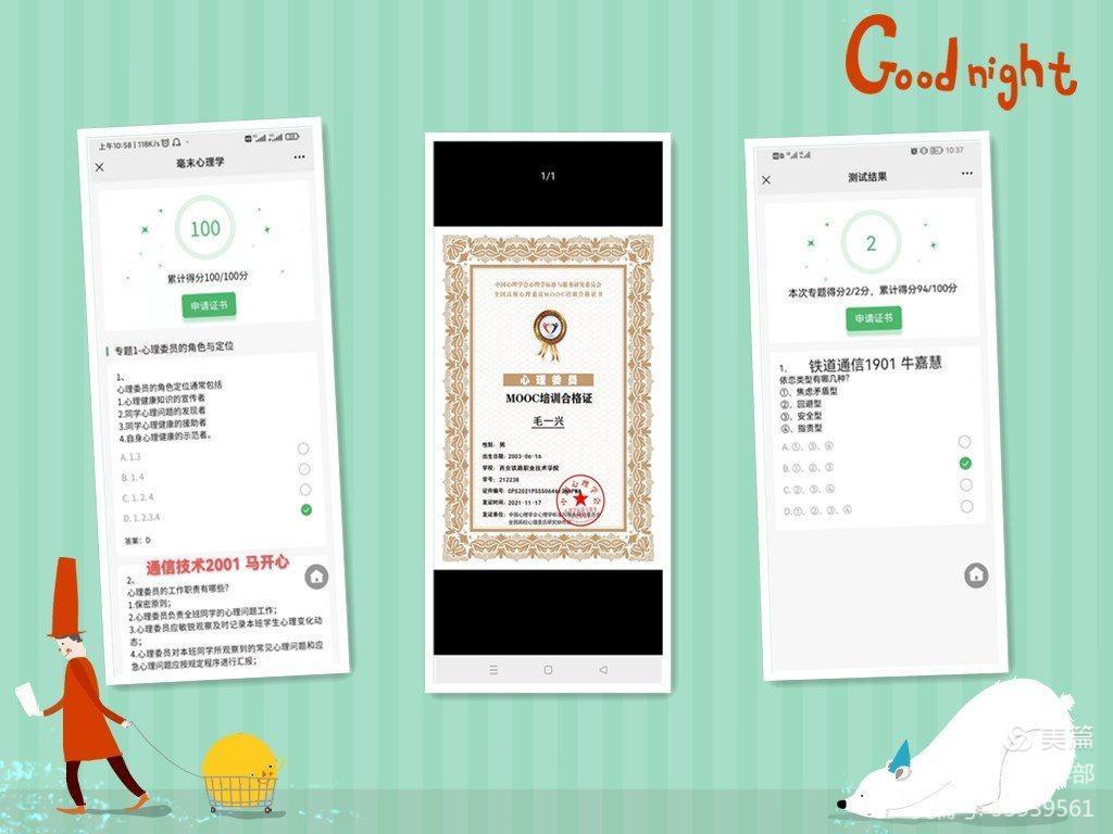 三是重视开展朋辈心理辅导。为加强朋辈心理辅导员队伍建设,各二级学院通过线上慕课、线下培训两种方式对班级心理委员、宿舍心灵护航员等学生干部开展培训,为加强心理健康工作有效性筑牢群体防线。活动期间,全院共组织开展班级心理委员、宿舍心灵护航员培训12次,参与培训学生2245人次。其中,在中国心理学会组织的心理委员网络慕课培训中,我院通过心理委员测试的学生共计1420人。