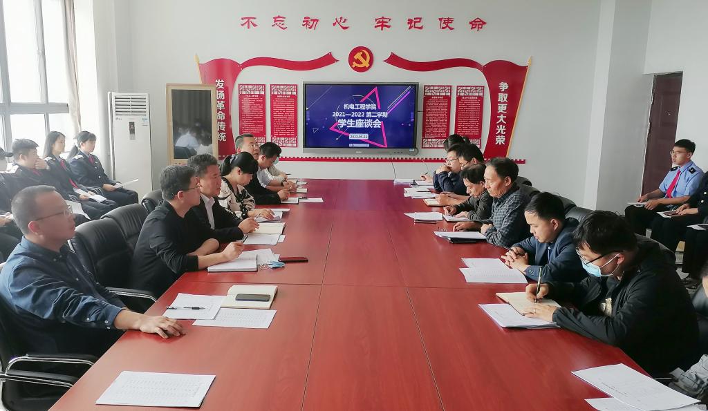 5月11日下午,机电工程学院在师生政治生活馆召开2021-2022第二学期学生座谈会。院长代礼前、党总支书记张伟敏、副院长郭峰、办公室主任邵泽宽、发展规划处综合科科长丁洪芬、各教研室主任、教务处、基础部、马克思主义学院教师代表以及各班级的学生代表参加了座谈会。