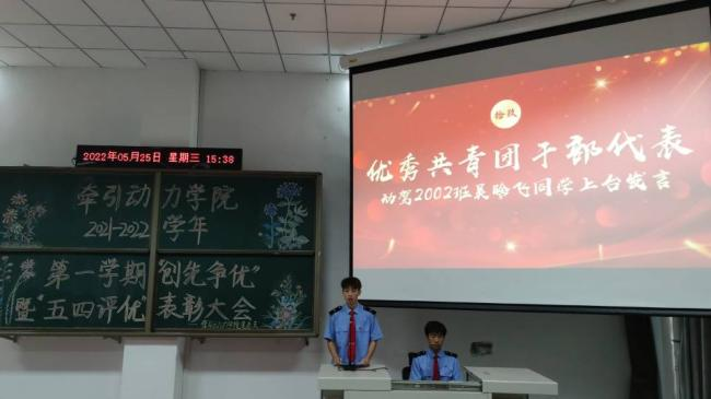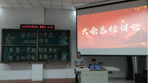 青年是国家的希望,青年是民族的未来,中国青年始终是实现中华民族伟大复兴的先锋力量,是推进中国特色社会主义伟大事业的生机所在。2022年5月25日,牵引动力学院召开“2021—2022学年第一学期‘创新争优’暨‘五四评优’表彰大会”,牵引动力学院党总支书记李贞伟、学工办主任陈广勇及相关人员参加大会。