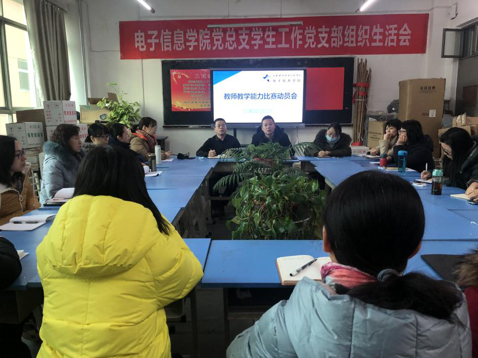 1月8日,电子信息学院召开2021年教师教学能力比赛动员会。院长董奇、党总支书记张伟敏、办公室主任马荣及各教研室主任、专业带头人、各团队全体成员及保障人员参会。