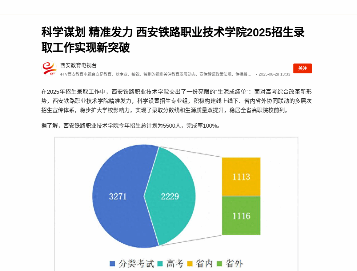 科学谋划 精准发力 西安铁路职业技术学院2025招生录取工作实现新突破