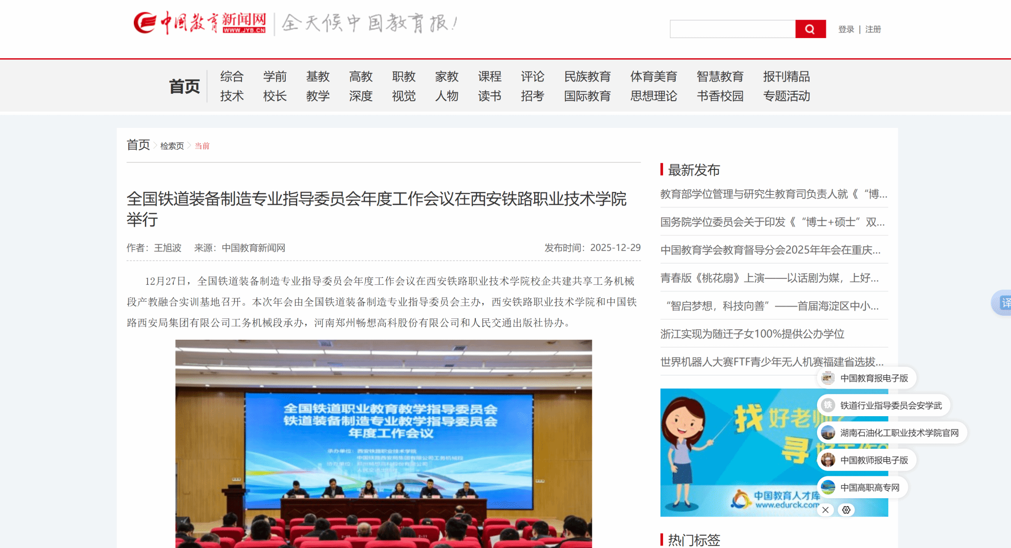 全国铁路装备制造专业指导委员会年度工作会议在西安铁路职业技术学院举行